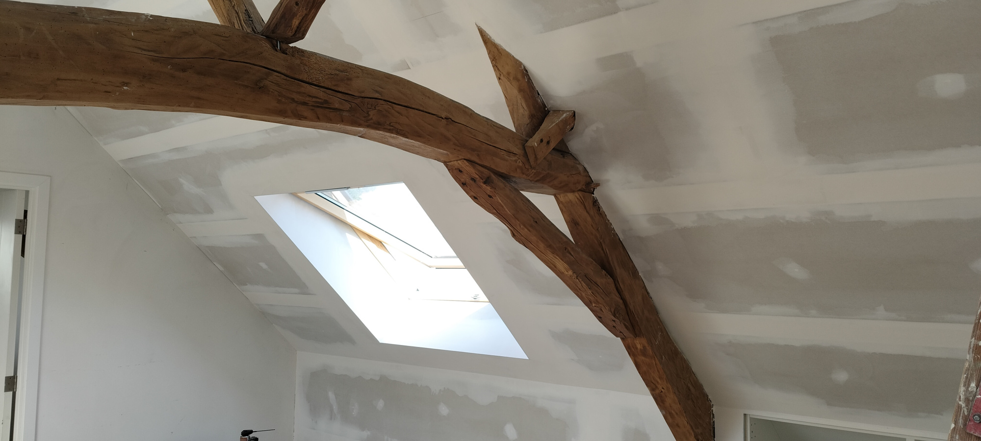 - Cloisons et finitions : pose et enduisage de plaques de plâtre (Gyproc).